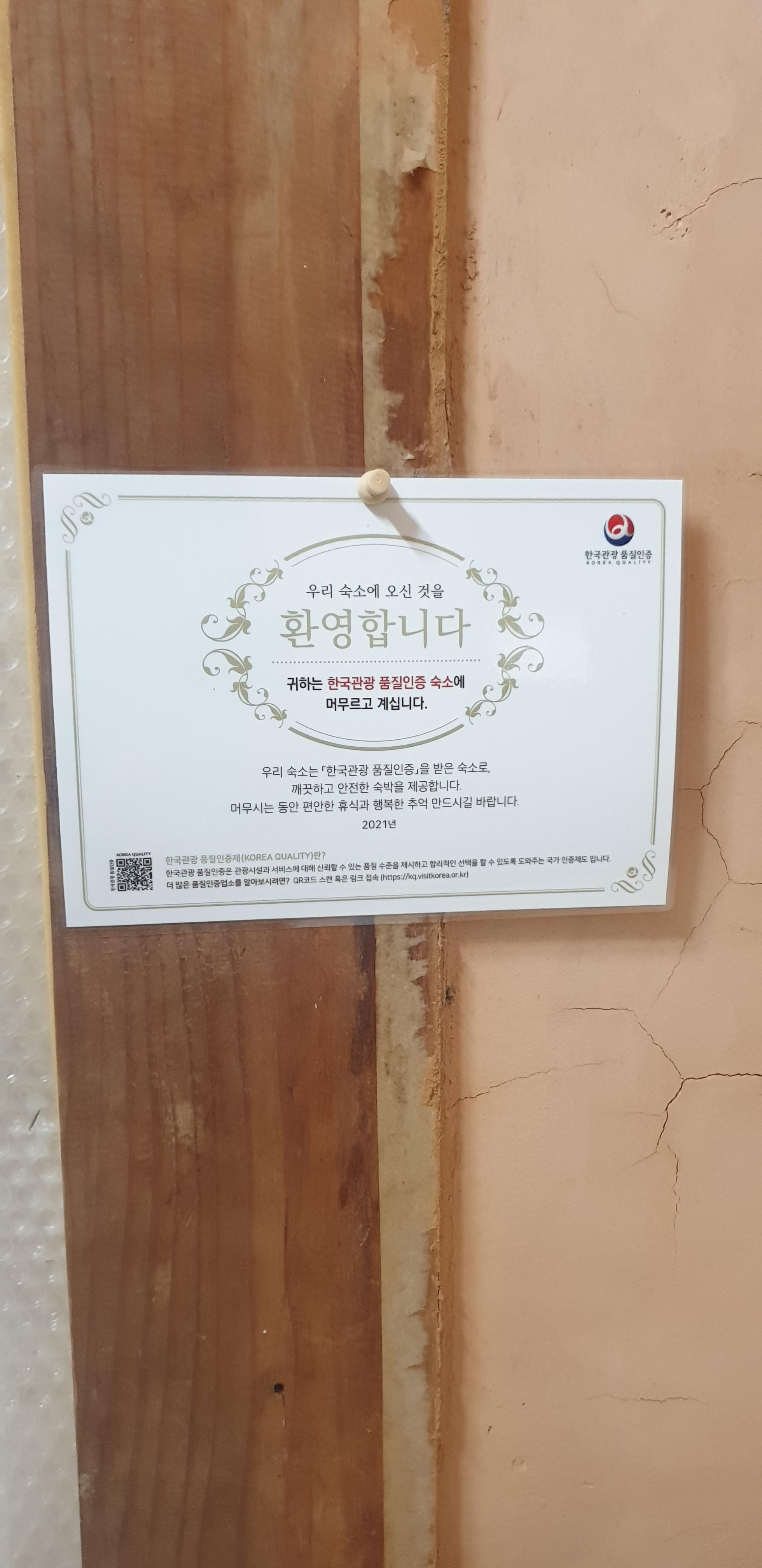 한국 관광 품질 인증을 받은 숙소다.