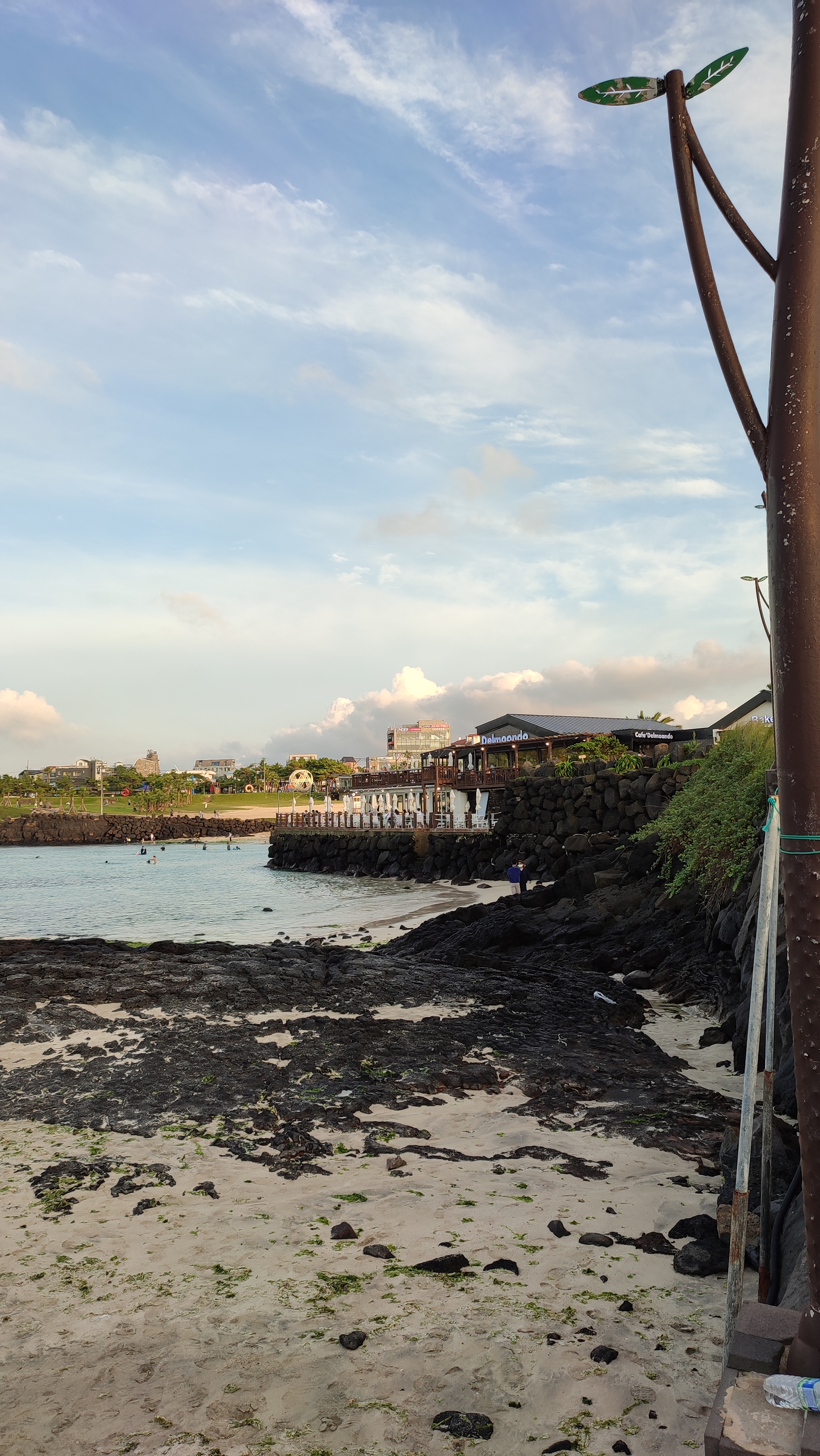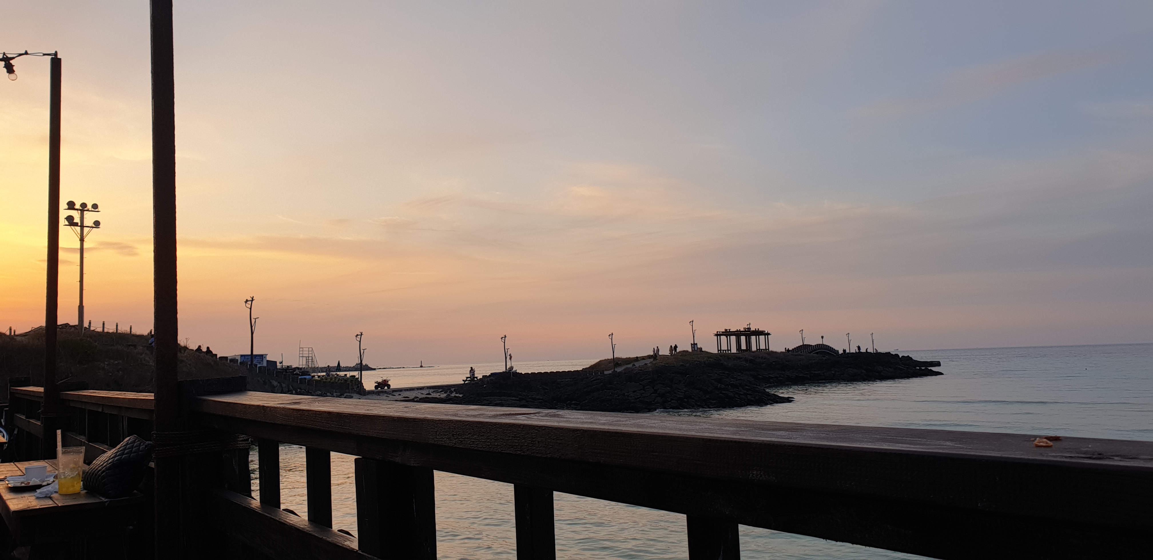 같이 간 모두가 아쉬워했지만 카페 바로 옆 모래사장의 스탠드에 앉아 주위를 둘러보며 밀크티와 빵을 열심히 먹었다.