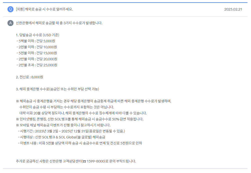 신한은행에서 해외 송금 시 수수료 안내