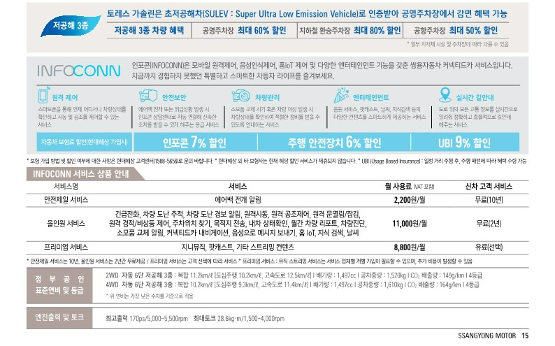 토레스의 가격표와 옵션표도 함께 첨부해 두었다.