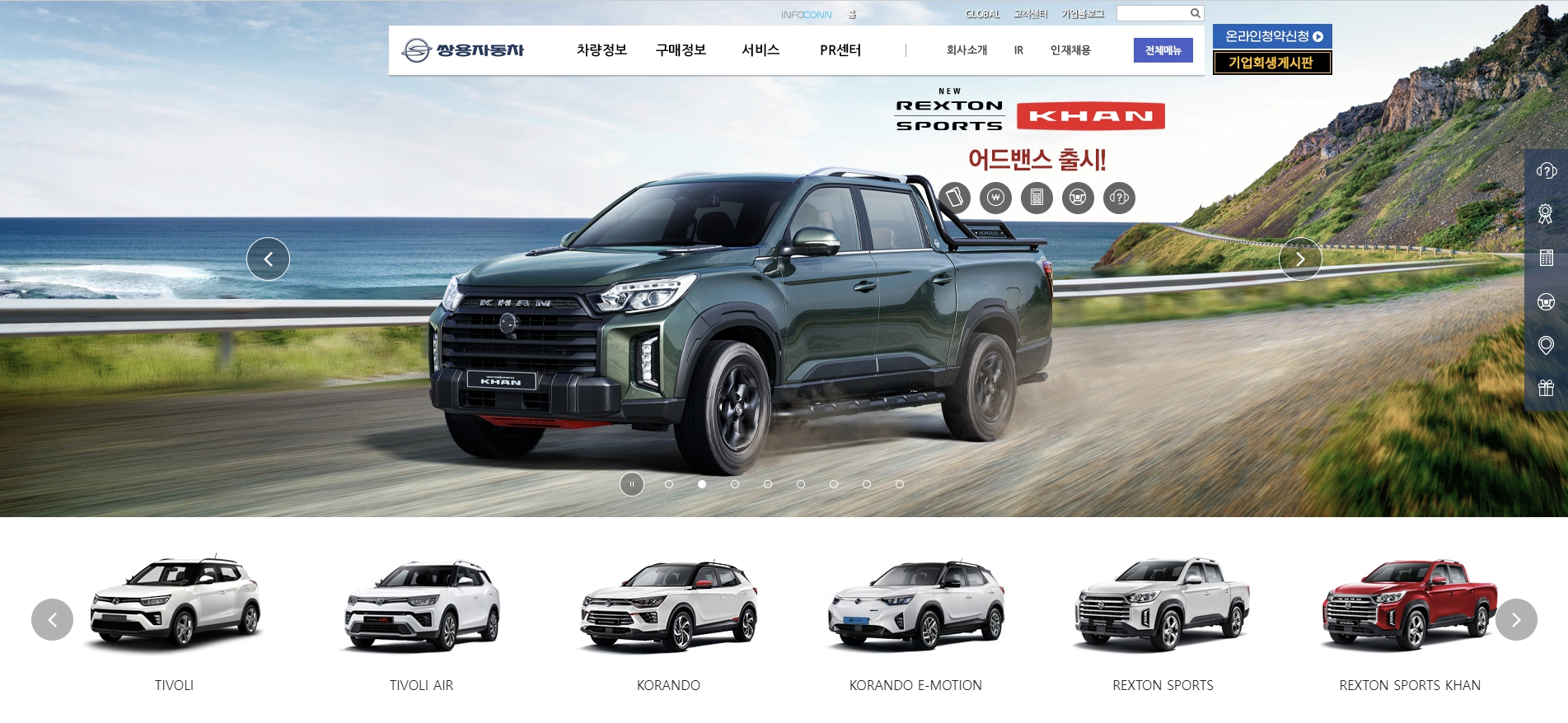 티볼리, 티볼리 에어, 코란도, 코란도 E-모션(전기차), 렉스턴 스포츠, 렉스턴 스포츠 칸 그리고 이제 토레스가 쌍용자동차 SUV 라인업에 합류했다.