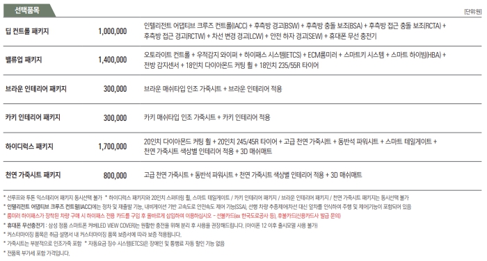 사전계약 이후 올라온 신차가격표는 아래와 같다.