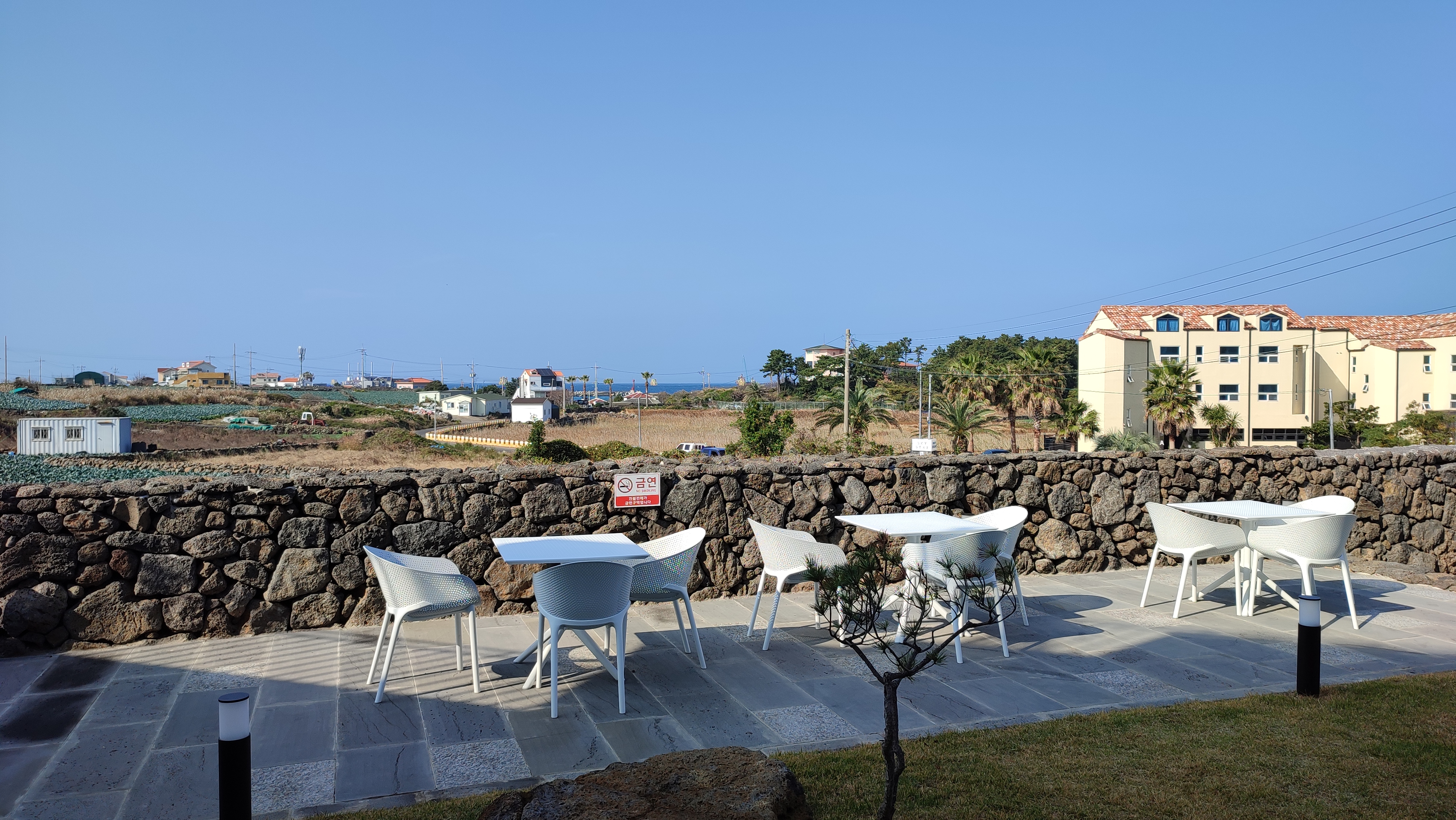 야외 테이블과 의자도 많이 있다.