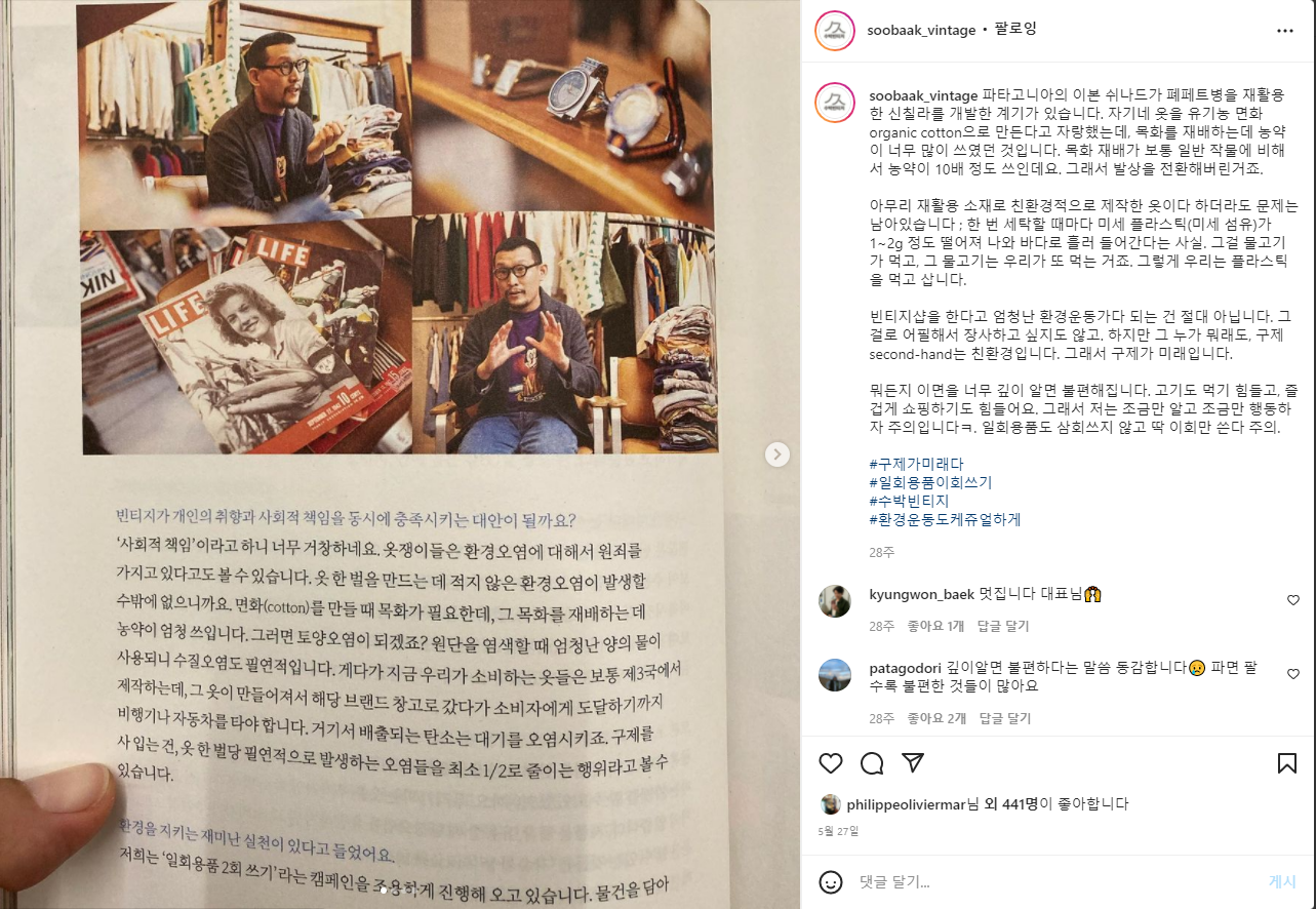 특히 수박빈티지 김정열 대표의 옷에 대한 철학과 센스는 굉장히 훌륭하다.