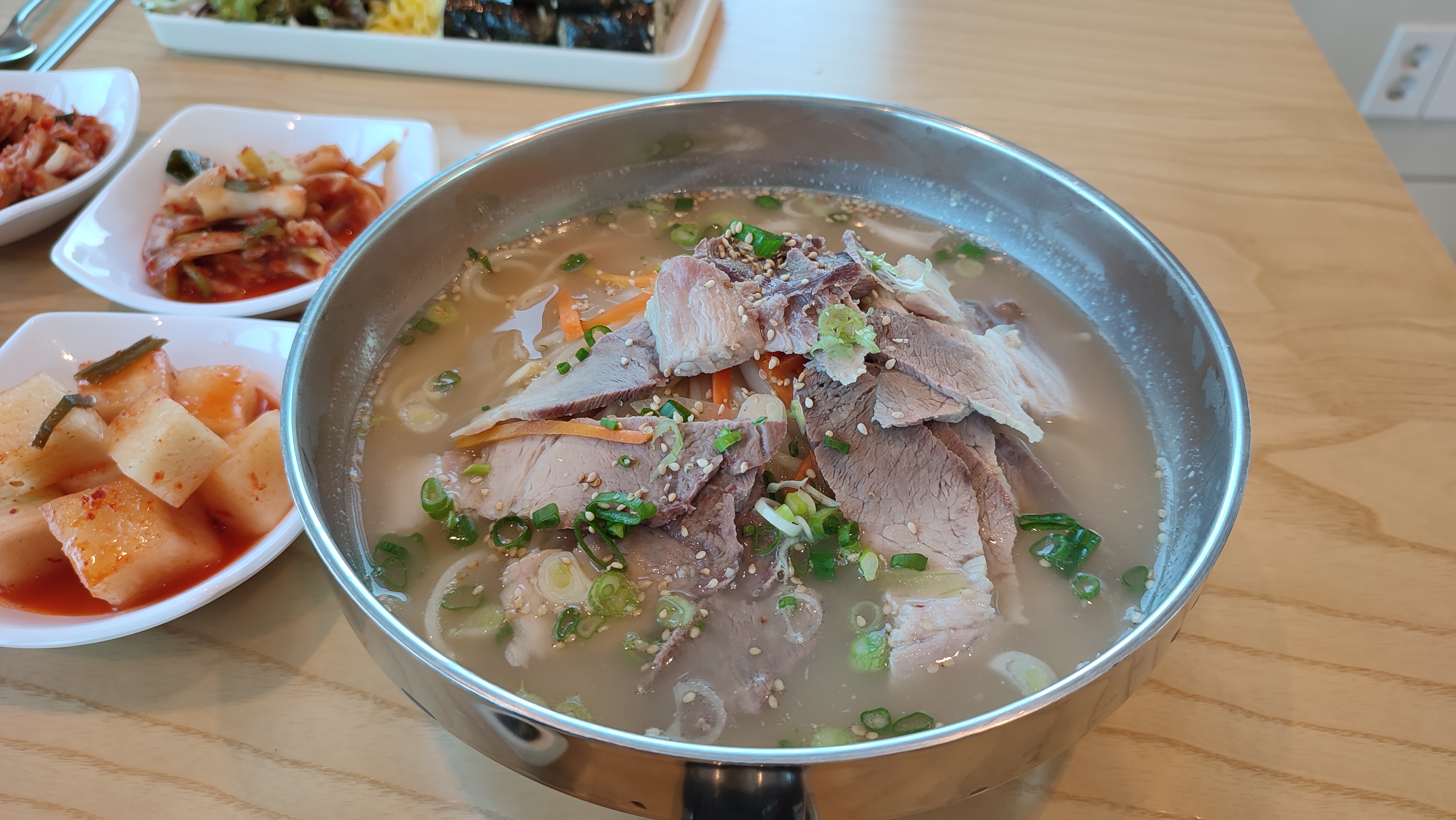 고기국수의 경우, 육수를 4시간 이상 끓여 국물 맛이 진하다.